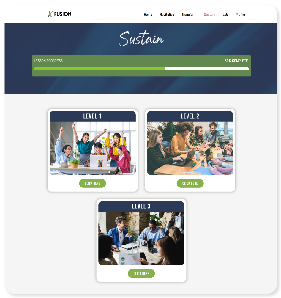 FUSION equips leaders with the resources, tools, and intentionally sequenced activities they need to strengthen both personal effectiveness and team performance. By combining the depth of foundational macro-learning with the practical reinforcement of behavior-changing micro-learning, the platform provides structured support that helps leaders translate strategy into action and model the behaviors they want to see in their teams.