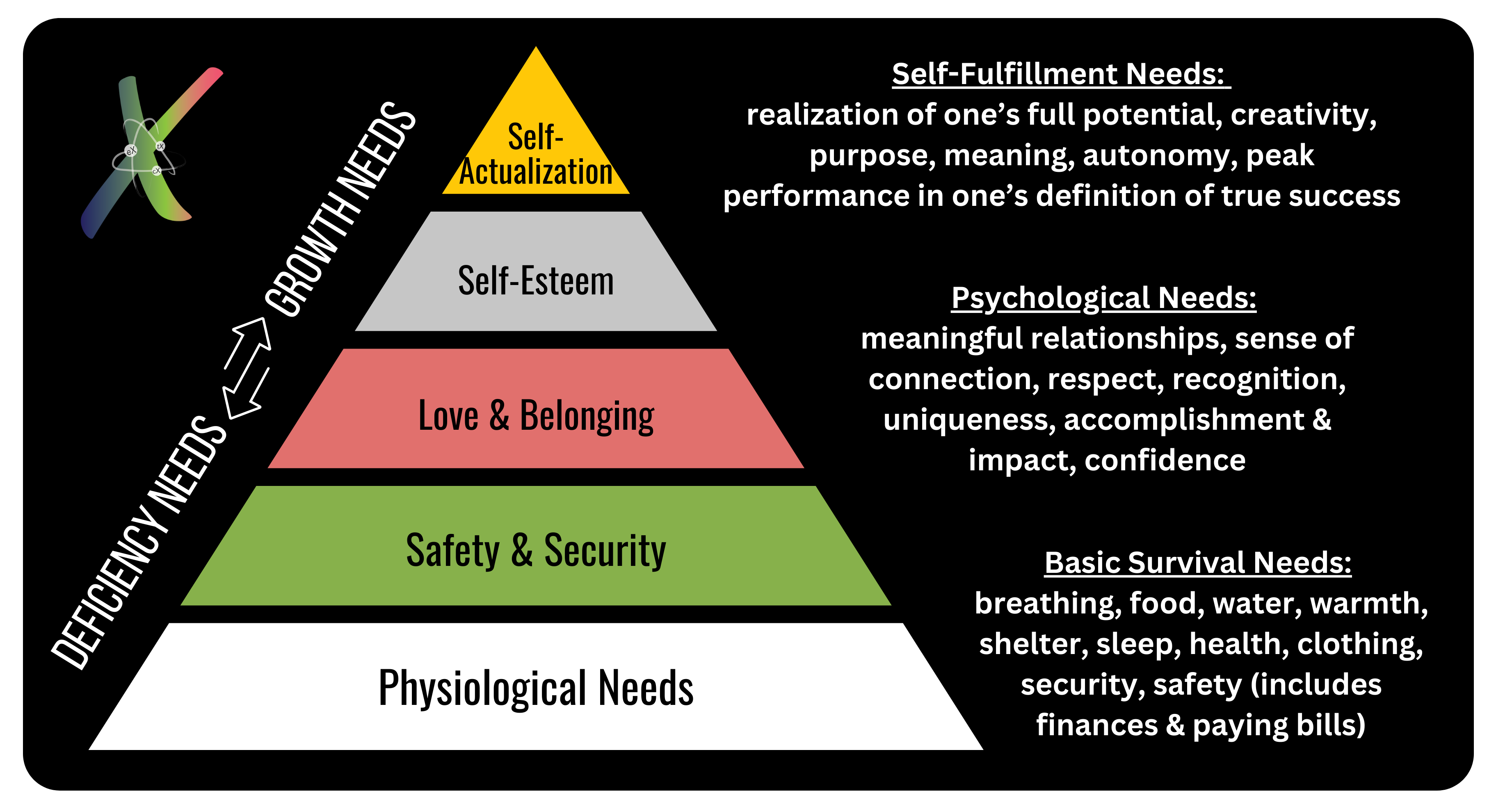 Maslow’s Hierarchy of Needs is a motivational theory and framework in psychology arranged in a hierarchy, which is a five-tier pyramid model of human needs. Basic needs must be satisfied before individuals can fully satisfy their higher needs of self-actualization and fulfillment. Therefore, aspects higher on the pyramid are harder to achieve due to interpersonal (team), environmental, and cultural challenges. -Abraham Maslow